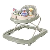 (More customer reviews)I just purchased this walker for my 6 month old baby and was disappointed that she is too short to touch the floor while sitting in it.Even on the lowest setting her feet are about 3 inches from the floor.If you have a petite baby, this walker is going to be useless for quite a while.It's cute enough, and she likes the spinner toys.The honey pot music box is SUPER LOUD!We had to put tape over the speakers and it's still a bit loud and tinny sounding, but at least the baby isn't afraid of it any longer.Overall, I think this is a decent walker.I was going to get the Chicco DJ walker, but couldn't find it locally.So I went ahead and got this one, which was quite a bit less expensive... I just wish she fit in it.