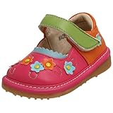 Your little girl will love this maryjane from Rainbow Steps. Not only does it look adorable, it sounds adorable, too. Its super-soft leather upper is embellished by scalloped trim and flower appliques. Its cushy footbed is outfitted with a fun squeaker: She'll be over the moon every time she takes a step.